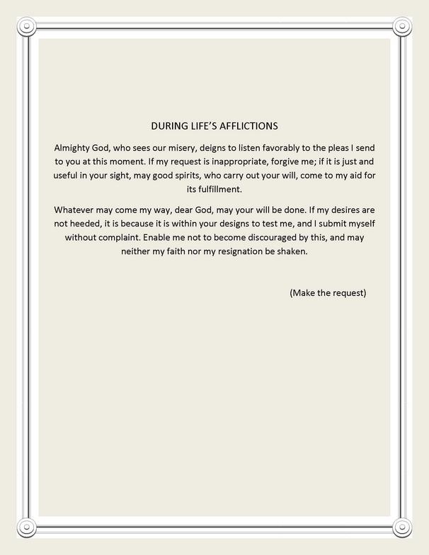 A COLLECTION OF SPIRITIST PRAYERS can be found in the book "THE GOSPEL ACCORDING TO SPIRITISM". (Chapter XXVIII)