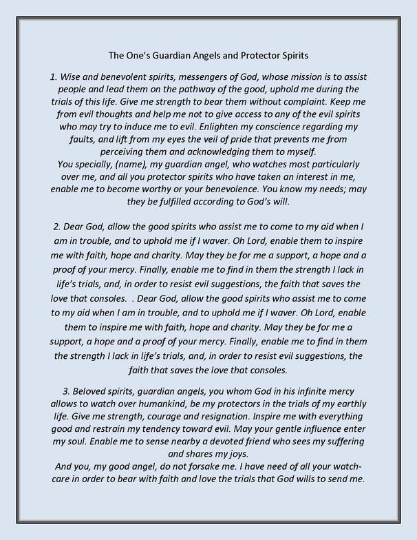 PRAYERS FOR THE GUARDIAN ANGELS AND PROTECTOR SPIRITS
